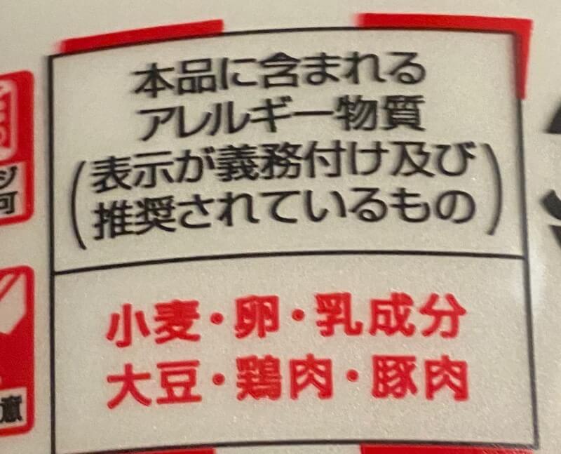 - アレルゲン:小麦、卵、乳成分、大豆、鶏肉、豚肉