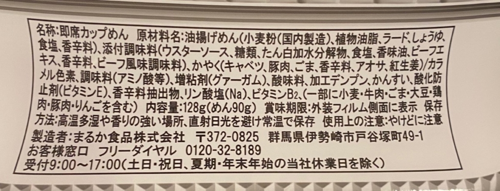 ペヤングやきそば具材アップの栄養成分とアレルゲン