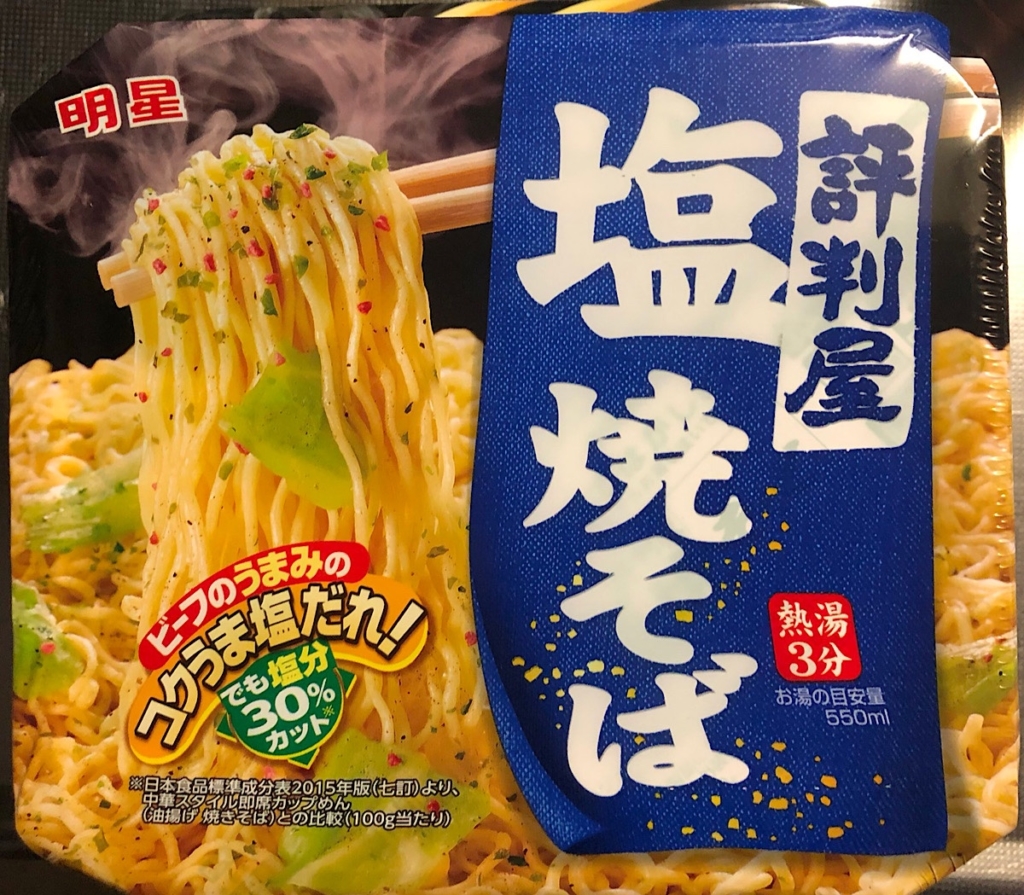 パッケージがリニューアルしていた評判屋塩焼そばの商品ラベル