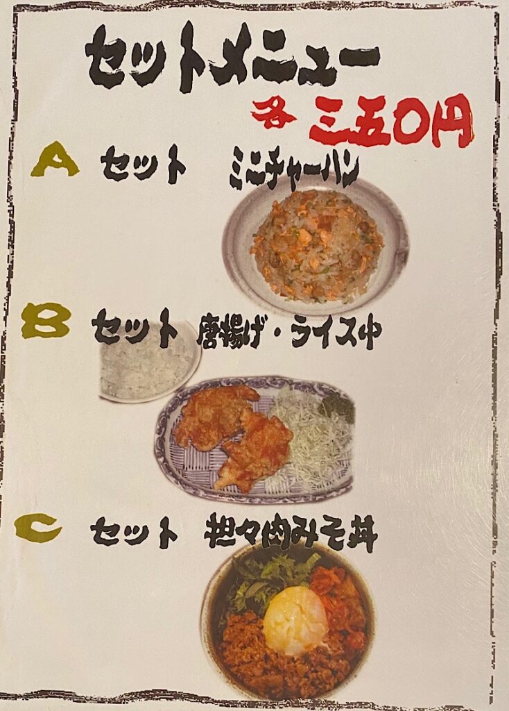 セットメニューは3種類あります。私のおすすめは圧倒的に「Cセット」。