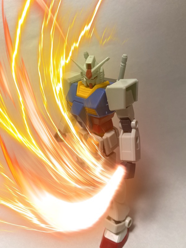 - カメラにエフェクトが出てる状態になるので、エフェクトにプラモを合わせてシャッターを押す