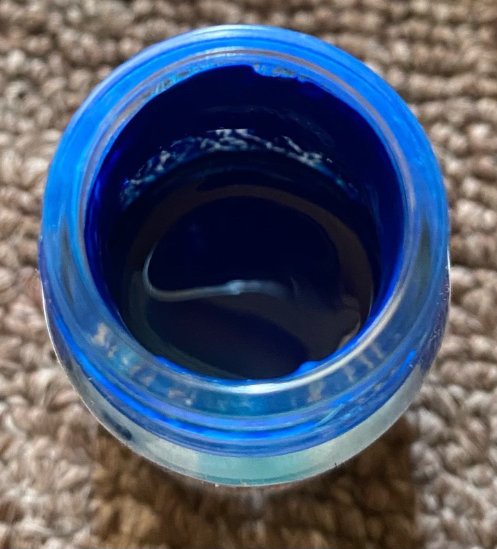 ガイアノーツサンのウルトラブルーですが、底には白色が沈殿し、上から見ると濃い青色になっています。