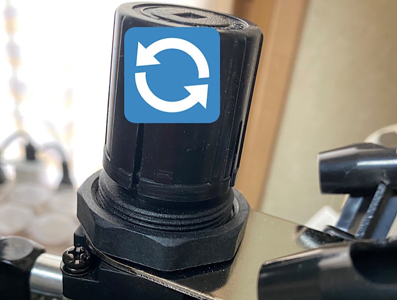 エアーをずっと出しながらだとしんどいので、ある程度エアー圧を落とすまで調整ねじを回してから、エアーが下がってきたらエアーを出して調整ねじを回して好みの圧力に抑えます。
