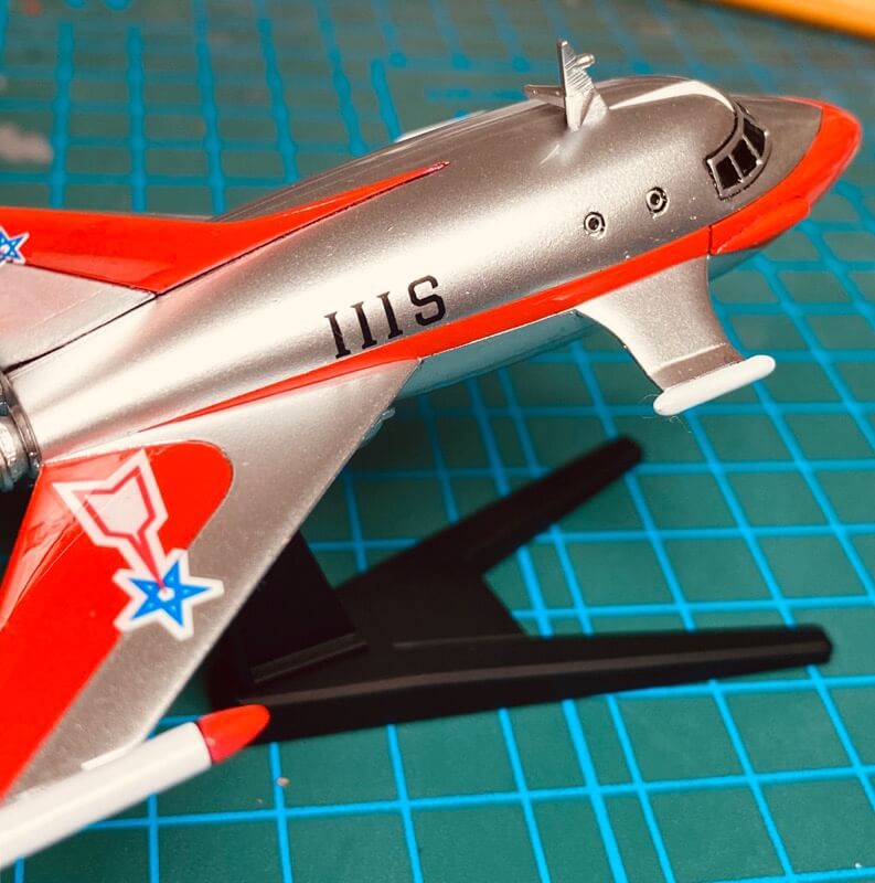 スマートなフォルムでカッコイイのですが、細かく薄いパーツが多く、自作部分もあるという難儀なキットでした・・・。 pic.twitter.com/NEsR7bOpp1