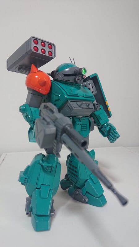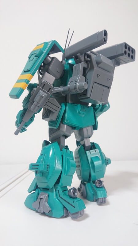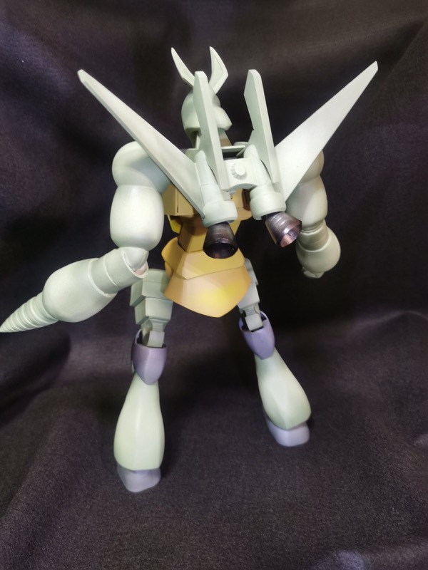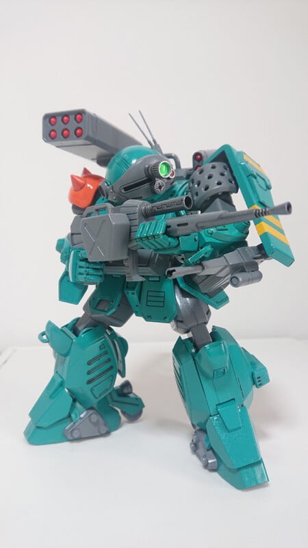左肩にシールド、右肩をスパイクアーマーにしてタミヤスプレーのコバルトグリーンと呉グレーで塗ってみました