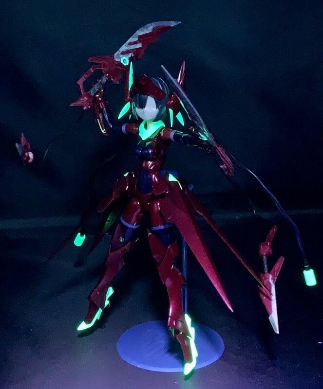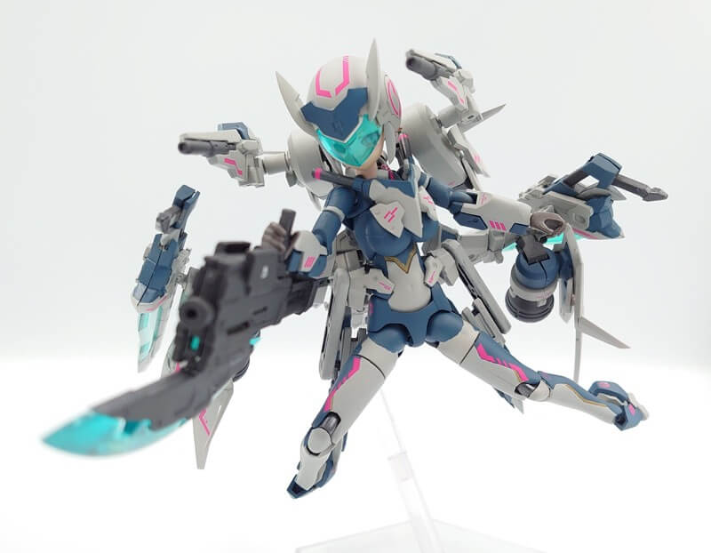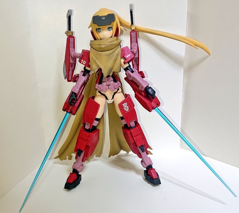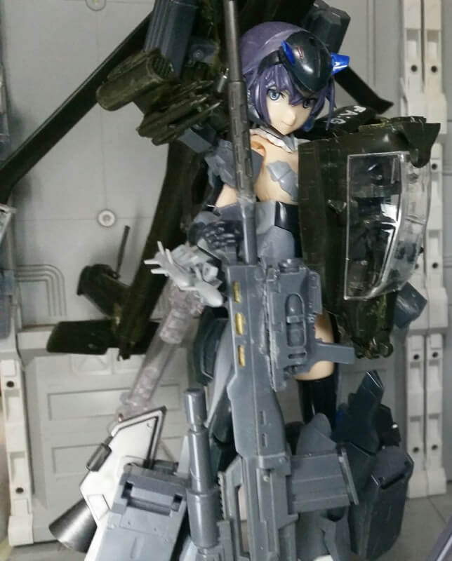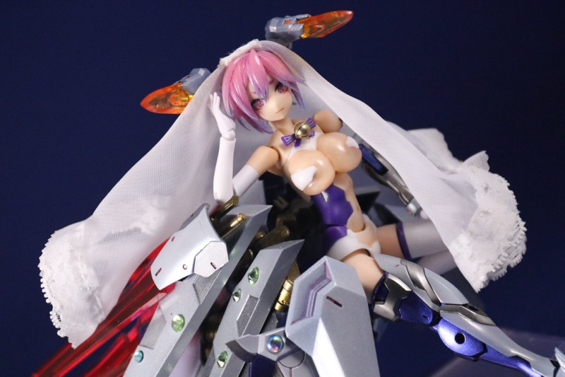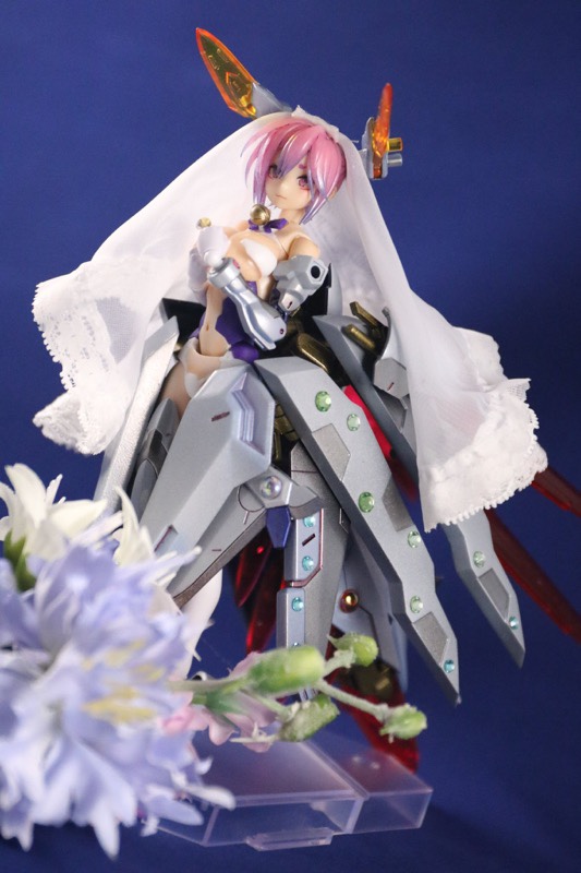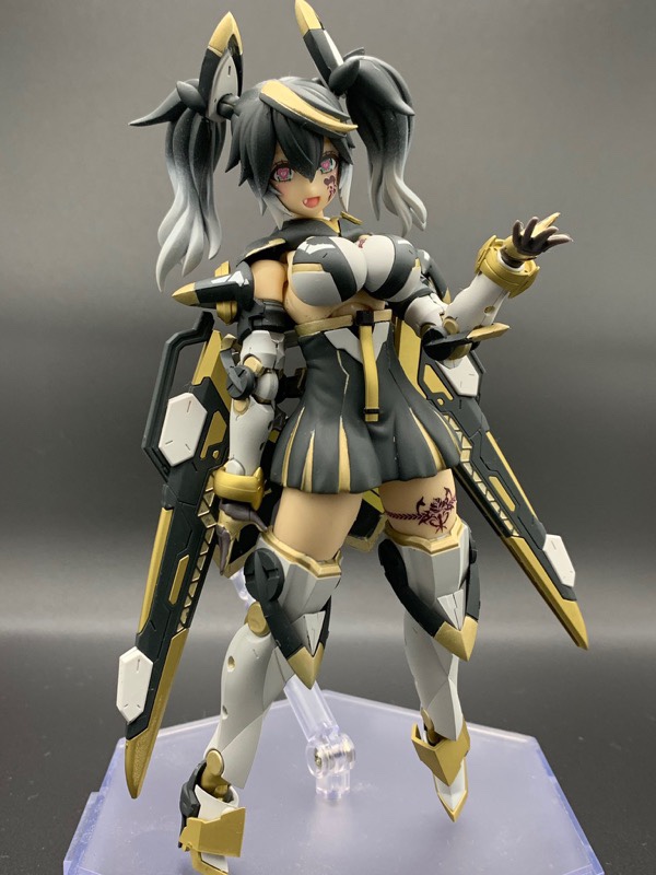 フレーム以外パール系で塗装しましたが、いまいちパール感が出ませんでした。4枚目は中身のメガミです。
