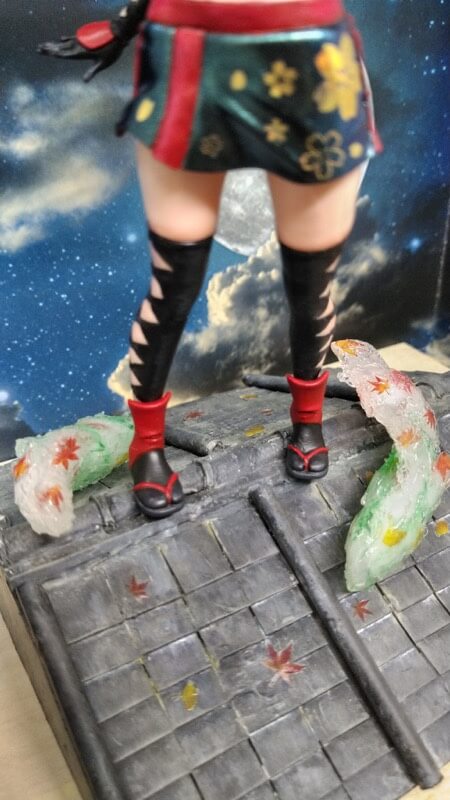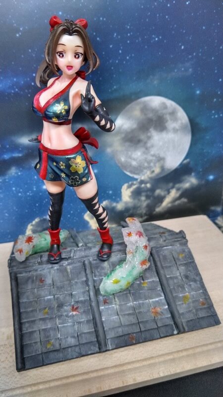 たまごガールズコレクションより白凪みくものガレージキットで参加します。足や腕、服の一部は和を意識してあえて筆塗り。屋根や背景、風のエフェクトは全て自作しました😆 #うみんちゅ杯プチ6 pic.twitter.com/BNzrsWvp6n