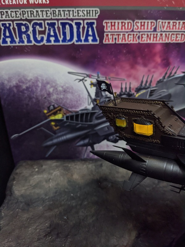 主砲の砲身は金属砲身に、船尾楼は光らせてます。
