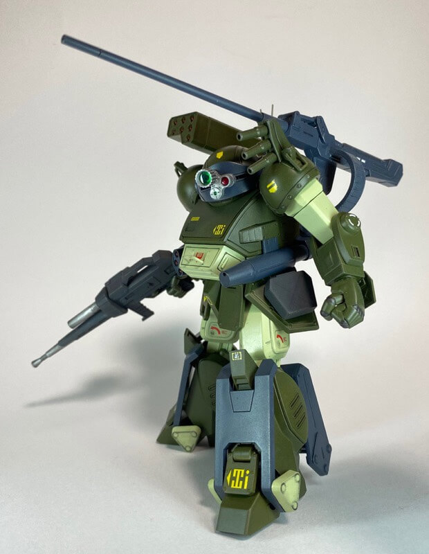 吹き飛ばされた左肩は零号機のパーツを転用。左腕は装甲を着けずに組みパテ埋め。