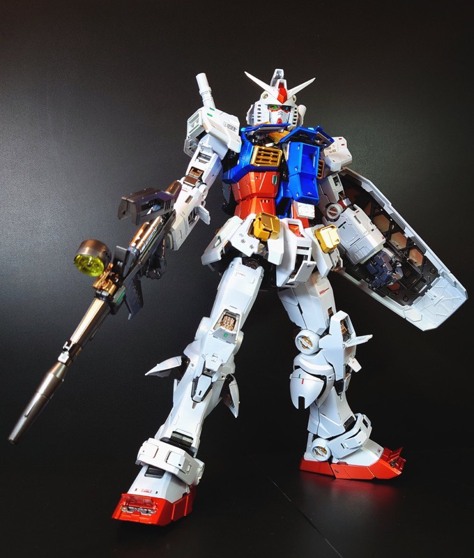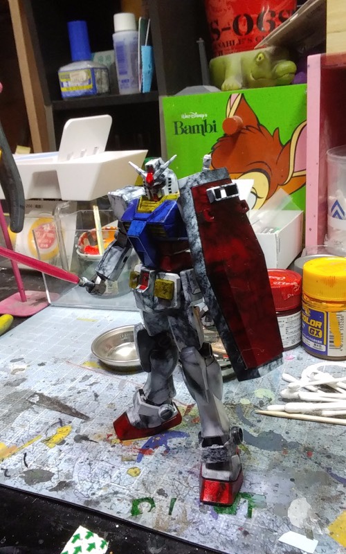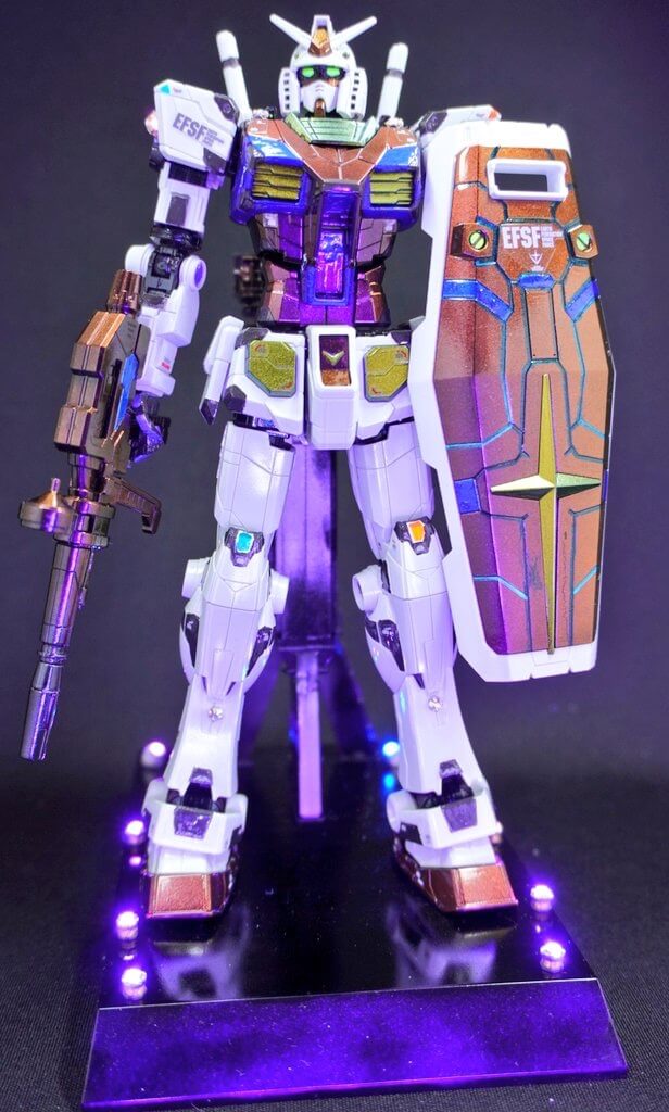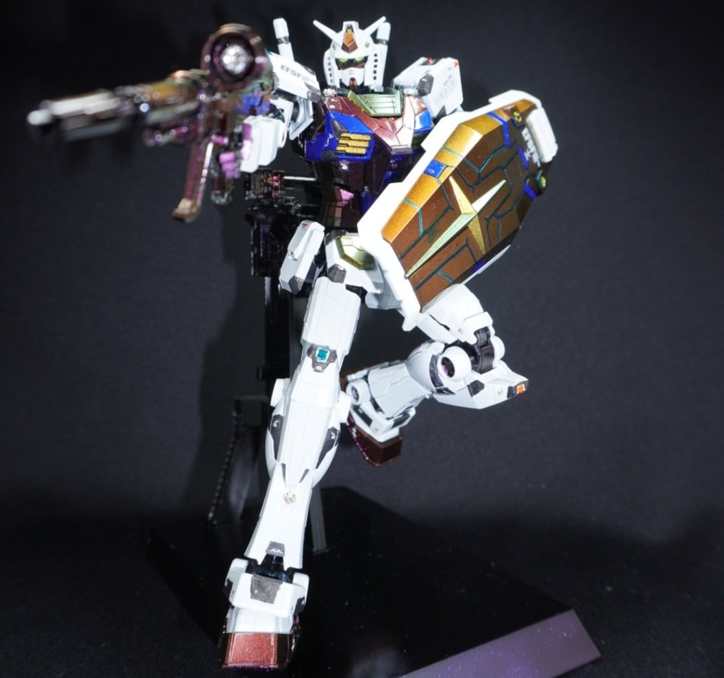ガンダムVerKaをゴツく見えるように少し手を加え、光るように塗装しました