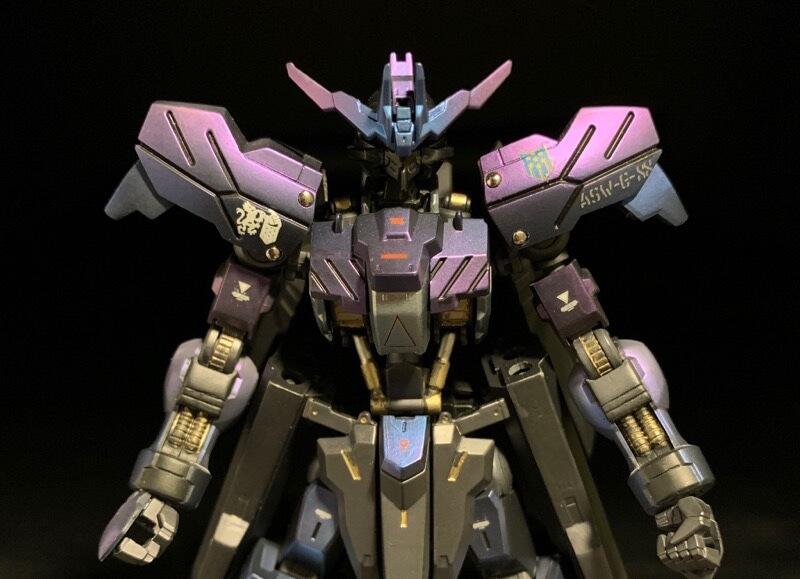 ガンダムキマリス(Re/100)完成しました。カラーリングは設定色より白部を紫強めにしました。塗装中におでこのパーツを小人に隠されてしまい、内部フレームがむき出しになっちゃいました。小人めぇ!#うみんちゅ杯プチ7 #鉄血のMA殲滅作戦#鉄血祭#ガンプラ pic.twitter.com/4erl8LVYJo