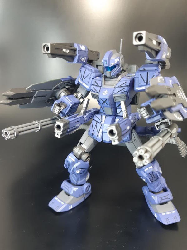 元のシルエットはあまり変えず関節の改造や首の延長、武装の追加をしています。