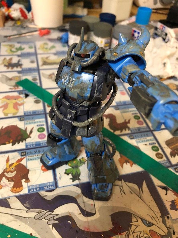 青いグフが好みという理由だけで筆塗りしたグフフライトタイプです☺︎#うみんちゅ杯プチ8 pic.twitter.com/aA67taW7es