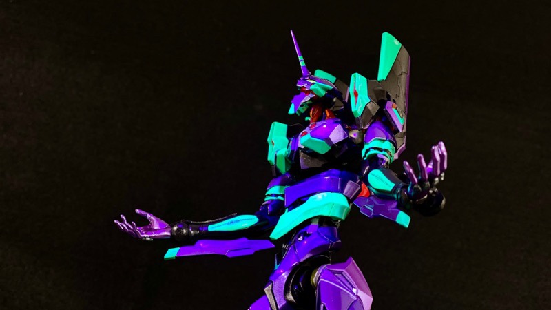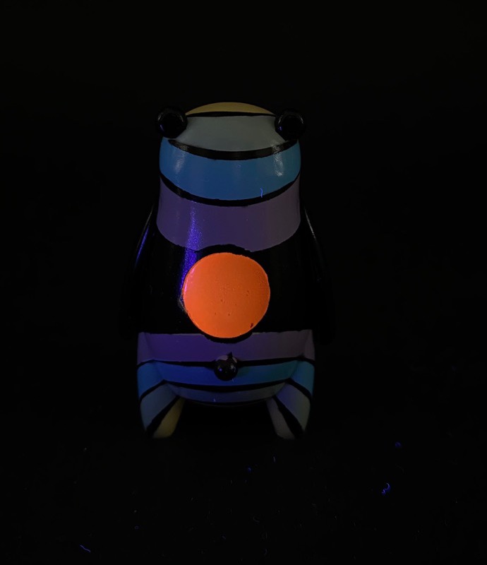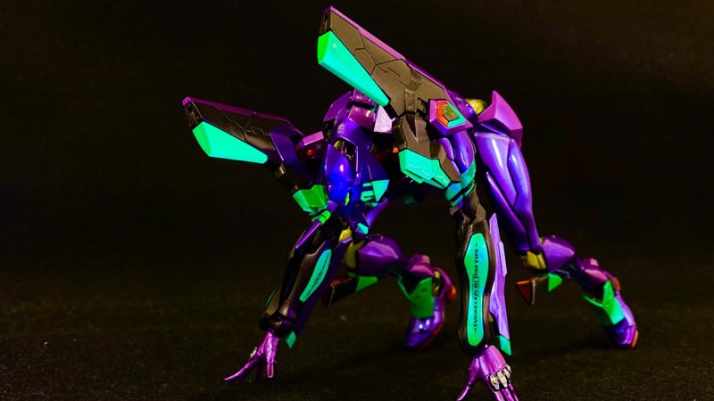 顔のピンクの部分と背中にあるコアはブラックライトで光ります。
