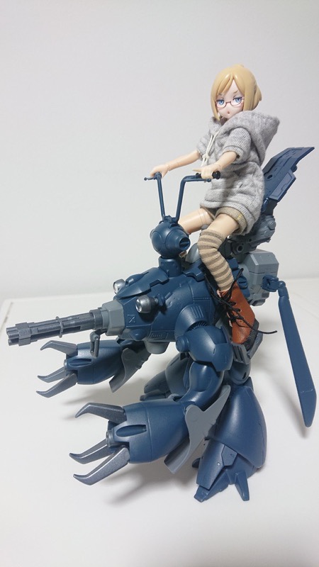 グラージとドラムロとズサを3in1してジャンクパーツでデコって好きな形にしてみました。塗装はタミヤスプレーのネイビーブルーと呉グレー。乗ってるのはメガミデバイスSOLホーネットです pic.twitter.com/h7DQlEqFiY