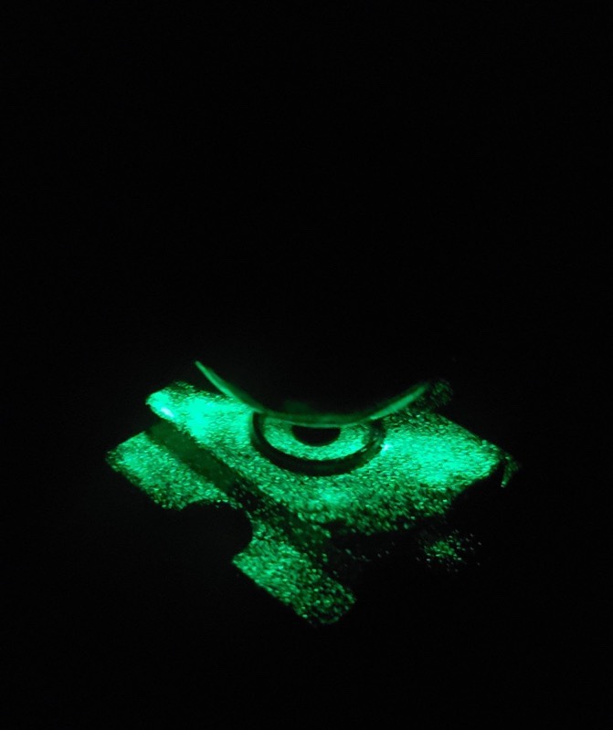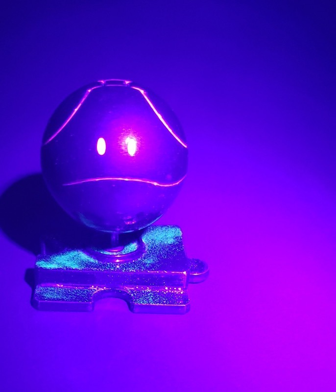 ハロのスミ入れに蛍光ピンク、台座に蓄光パウダー、全体をウレタンクリア吹き付け後コンパウンド処理 pic.twitter.com/6ZPnQQoKNI