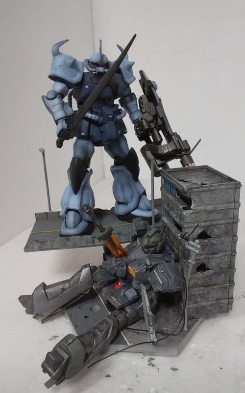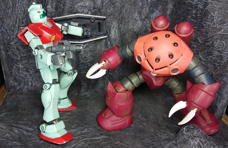 転がってるジムはジムクェルがベースで時代背景はジオン残党狩り機が返り討ちにあったシュチュエーションです。