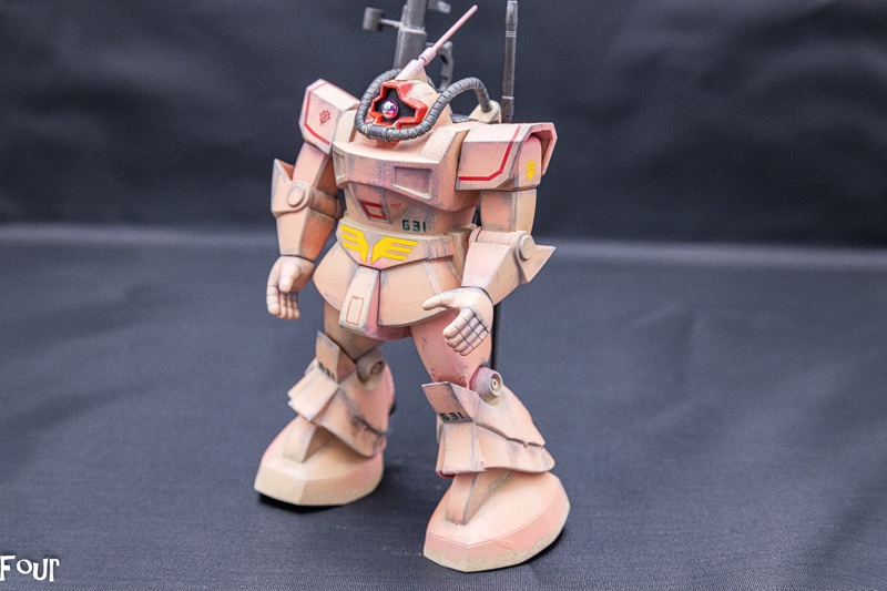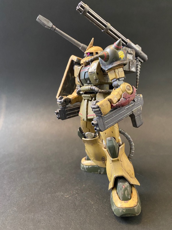 ピンクサフを吹いてから、残るようにタンを吹き付けてデザートピンク迷彩と砂漠塗装の中間を目指しました。手の肉抜き埋め・足首の関節を改造してドムらしく立てるようにした以外はほぼ素組みです。#うみんちゅ杯プチ9 #ガンプラ好きな人と繋がりたい pic.twitter.com/o5HZ8iNv7s
