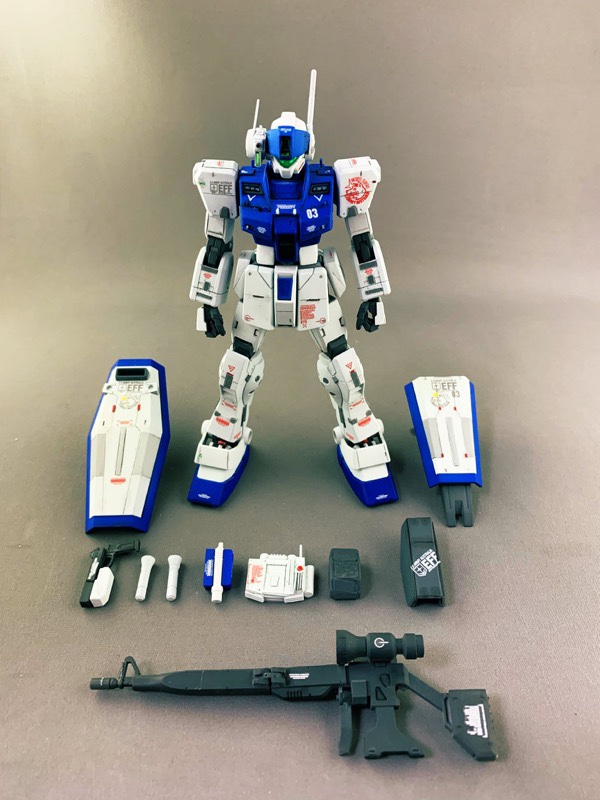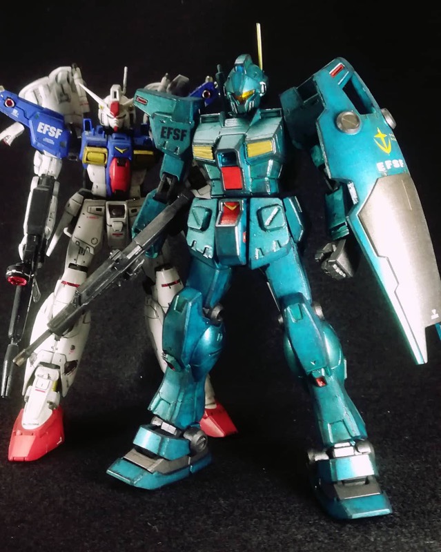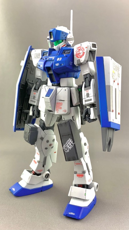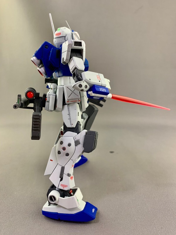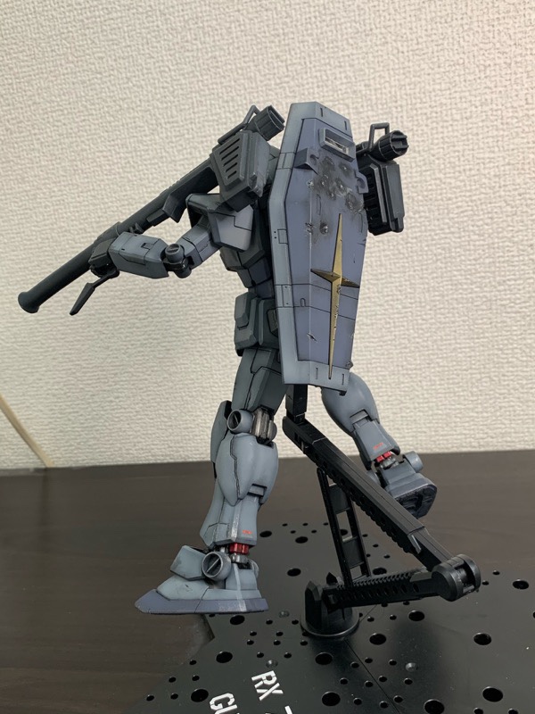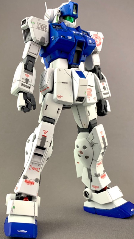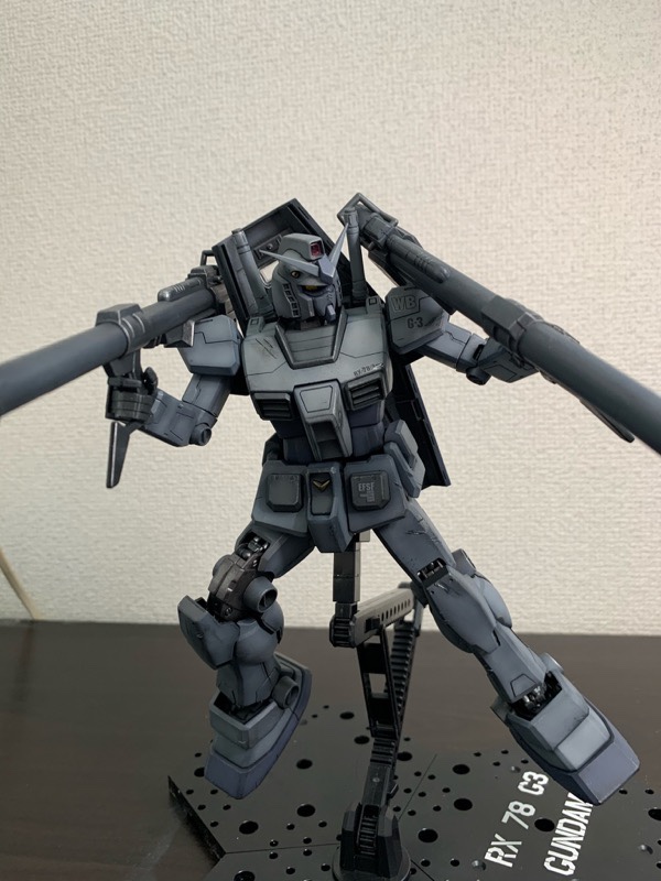 今回も参加させて頂きます😌 MG ガンダムRX78ver1.5 G3風塗装 後ハメ加工 股間軸位置変更、ダメージ加工など 初めて実施しました 段彫、スジ彫を若干追加してます♪