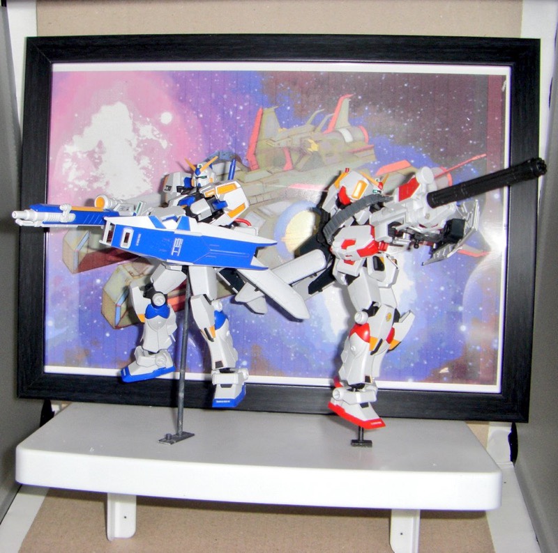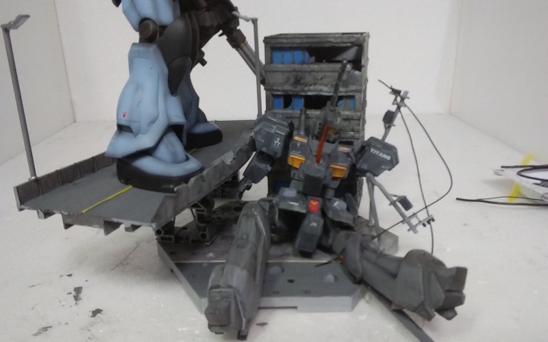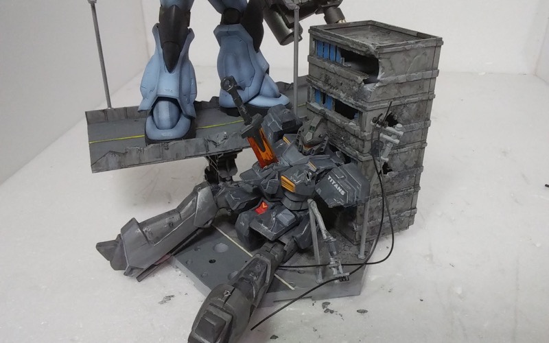 HGのガンダム4号機と5号機で、簡易的なジオラマを作成しました。