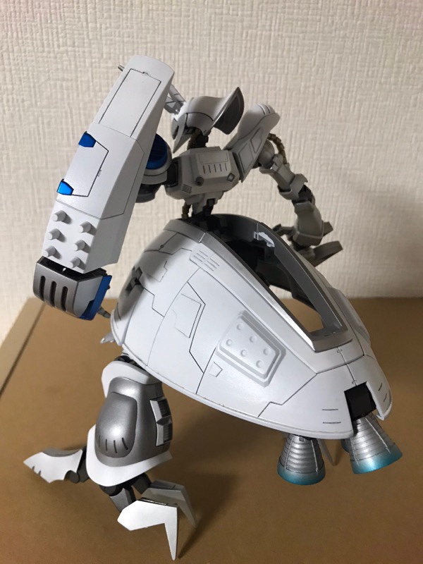 クリアパーツの裏側はエナメルシルバーで塗装しました。スラスターは濃い青はガイアカラーのExシルバー→アルティメットブルー。