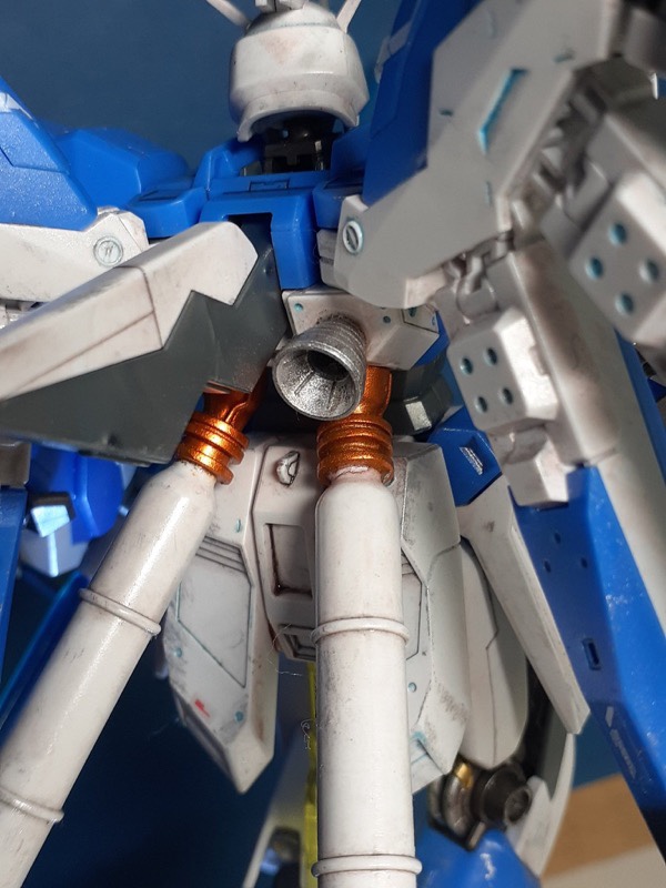 HGUC Hiνガンダムで参加です!成型色を活かし、部分塗装です。イメージは宇宙戦争です。過酷な環境の中、錆てあまだれしたのをウォッシングで表現しました!少しづつメタルパーツが入ってます! pic.twitter.com/RJRWFNjO5C