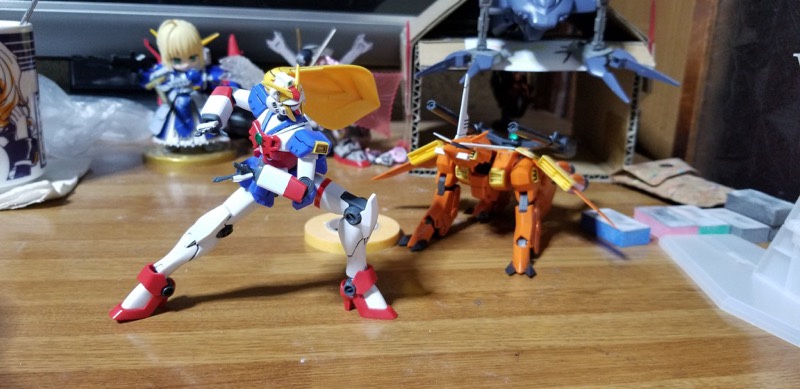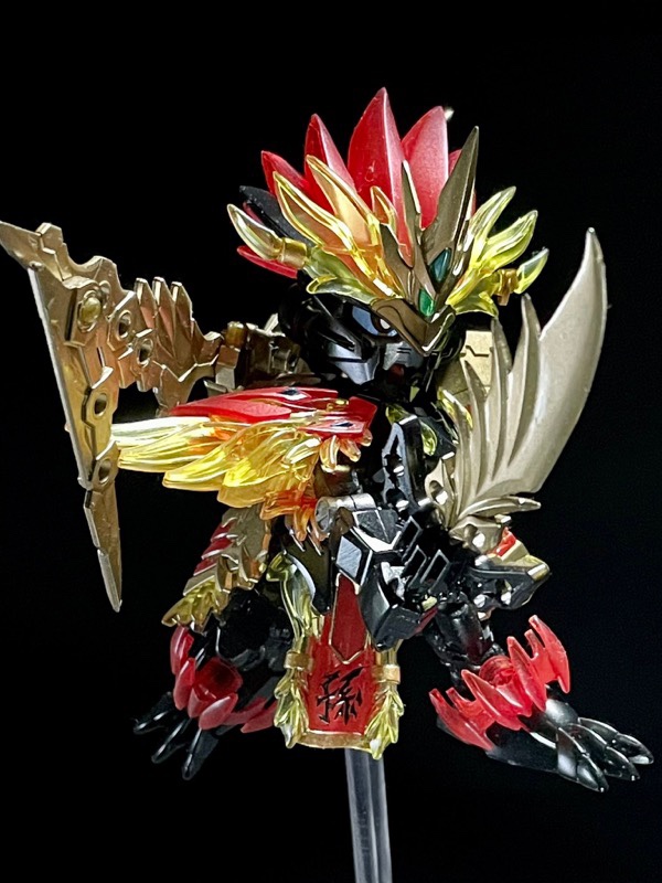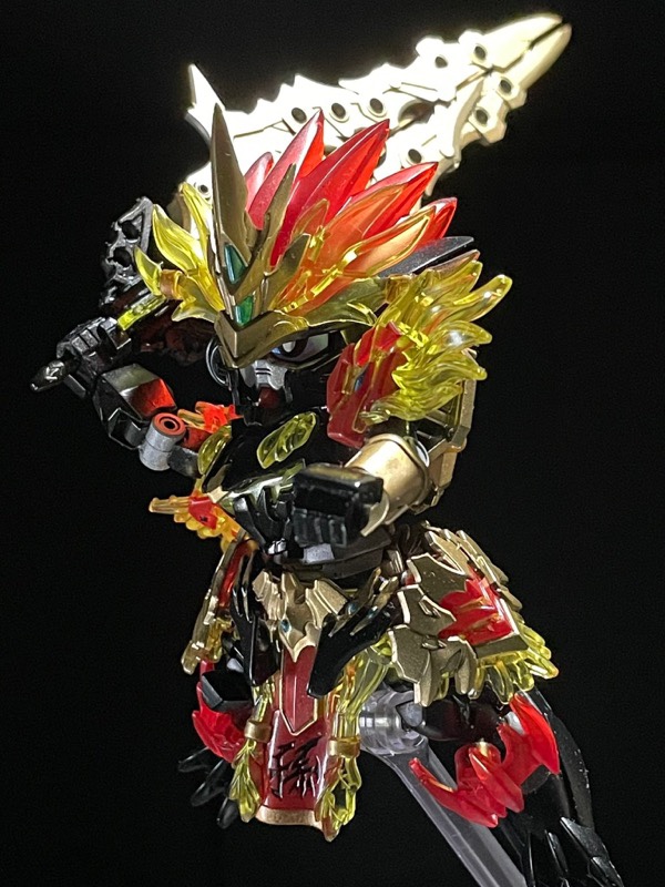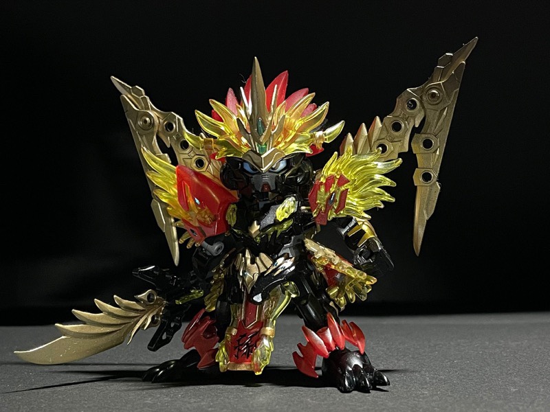 今回は部分塗装とスミイレで完成させました。金色のところはゴールドの上からクリアイエローで塗装してあります。あとパーツによって型成色のまま1色しかないところは説明書見たり箱見たりして塗装した部分もあります。