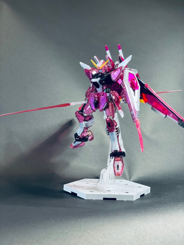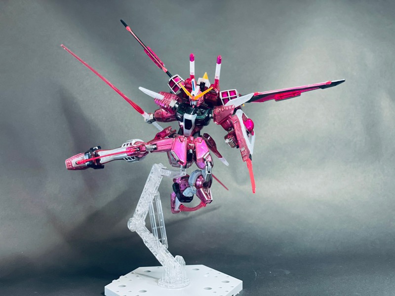 クリアのインフィニットジャスティスを、裏からプレミアムミラークロームを吹いて、表にクリアピンク吹いてます。