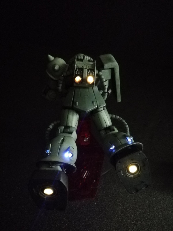 モノアイはHアイズにして蛍光塗料で光るようにしました。