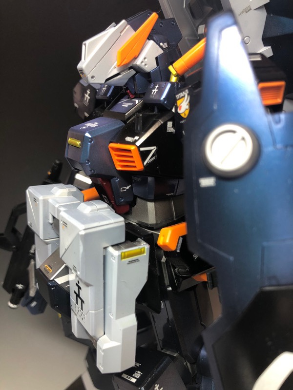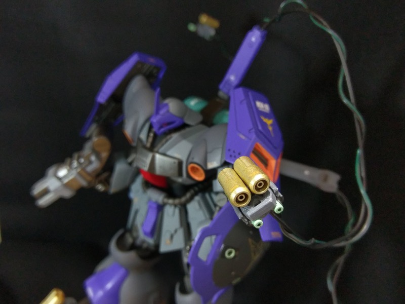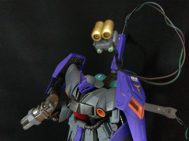 角部分はパール塗装、頑張ってシールドに穴開けて、バーニアの内側はゴールド塗りました