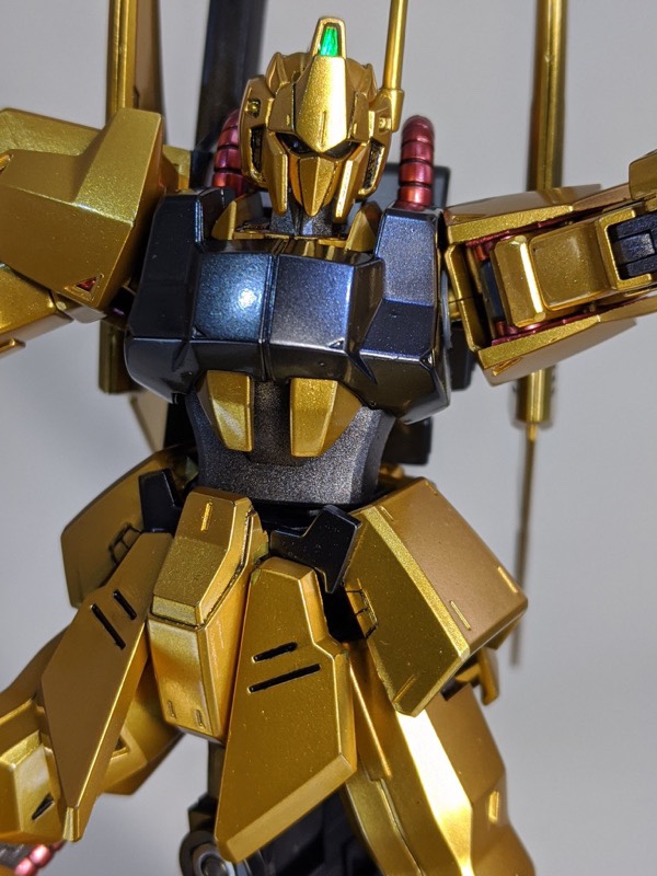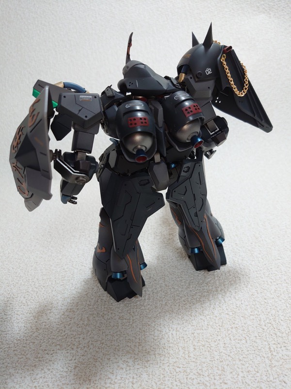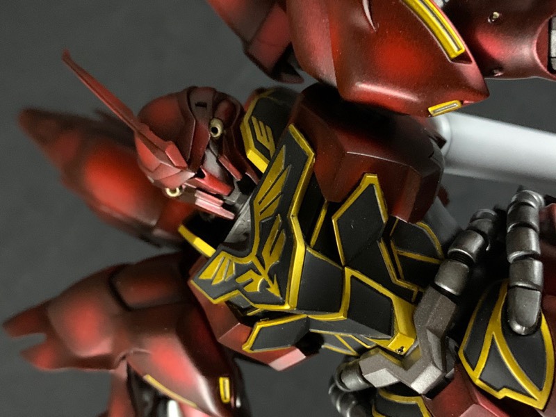水性ホビーカラーだけで深くて暗めのガンメタが出来ました(赤ではなくダークグレーを吹き付けた)。こういうサザビーも、ありなんじゃないかなと思いました。 pic.twitter.com/nDbKqBQ00M