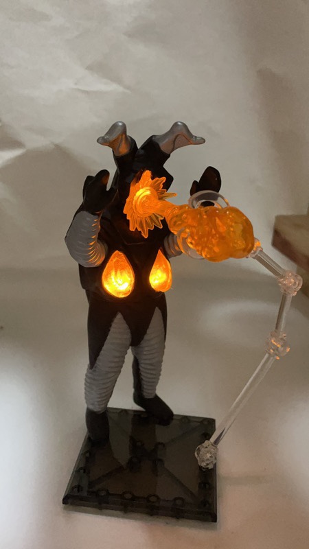 土台にLEDを入れ溶岩を演出してみました。盾等所々艶塗装です。