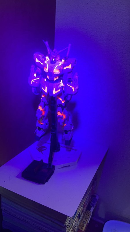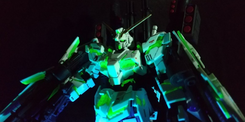HGUCユニコーンです。サイコフレームを蓄光塗装です。キーホルダーとかの夜光の光るものをガンプラに使うとか、20年前では考えられませんでした。個人的に満足な1体です😆。#うみんちゅ杯2021春 pic.twitter.com/mu59LPrvsn