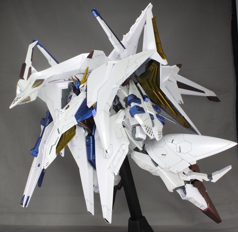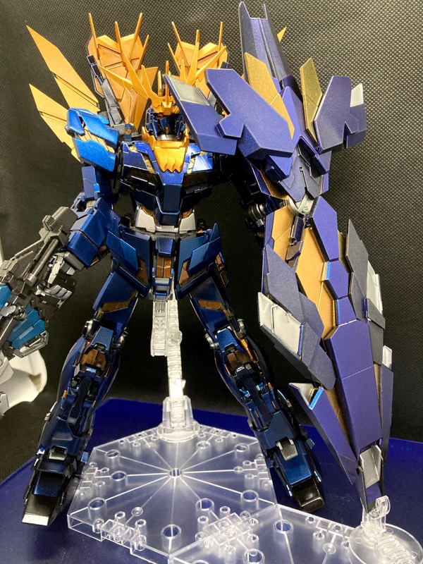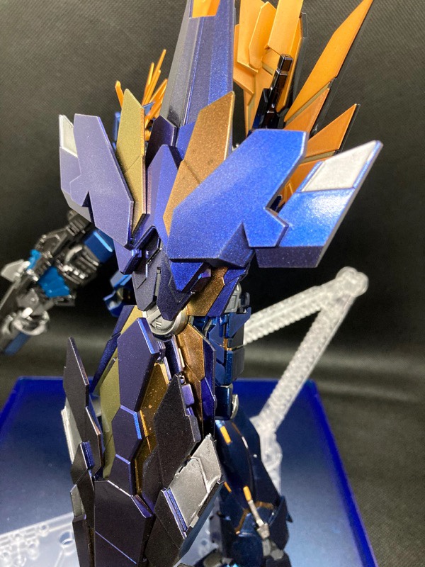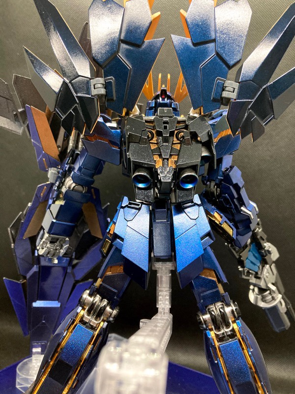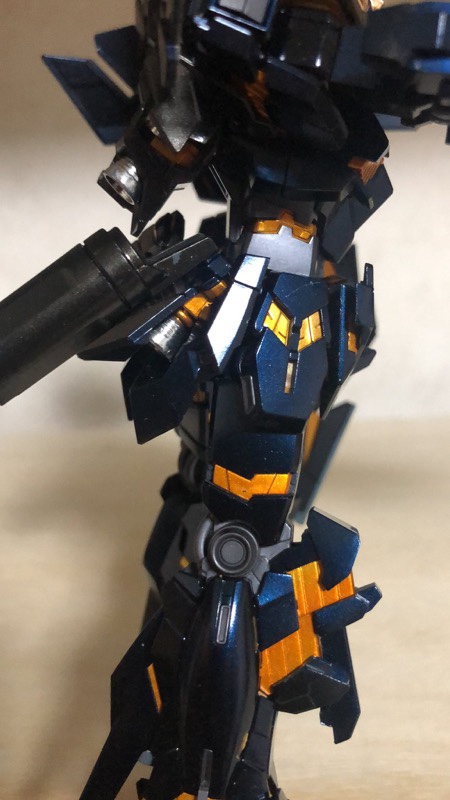 過去作OKとのことだったので、過去作の中でお気に入りの『MG バンシィ・ノルン』で参加します。サイコフレームとアームドアーマーDE&XCは偏光塗料を使用し、本体は黒下地からのパール塗装をしています。また、塗装したパーツのすべてをコンパウンドで磨いています。 pic.twitter.com/KQC7CxChV4