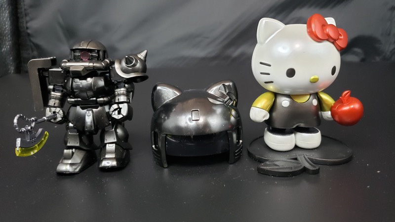 ザクはメタリックブラック、ブラックパール、スパッタークローム(ブラックメッキ)の塗り分けです