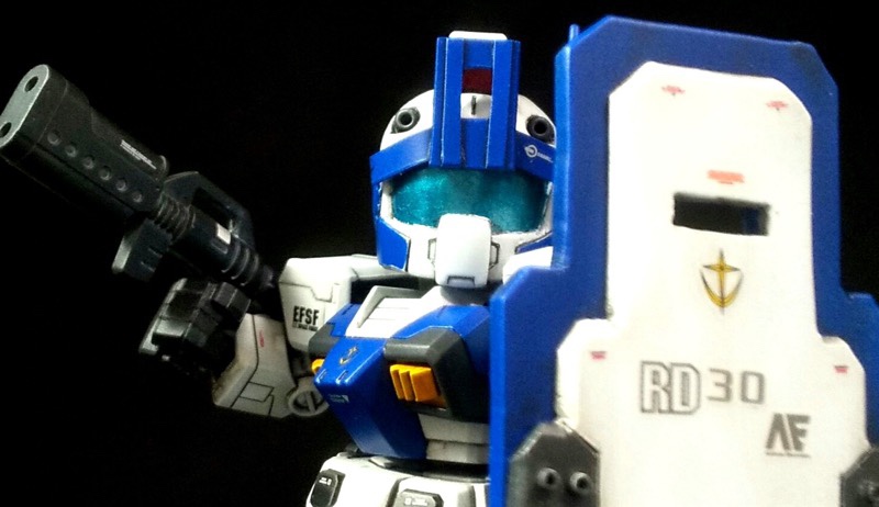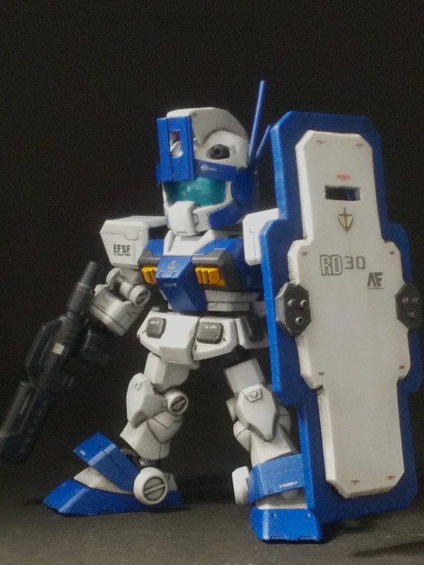 クロスシルエットのジムをベースにそれっぽい塗装とそれっぽい武装にしてみました。ガーディアンシールドはもう一回り大きく作っても良かったかなと思っております。 pic.twitter.com/CbVxMfAskn