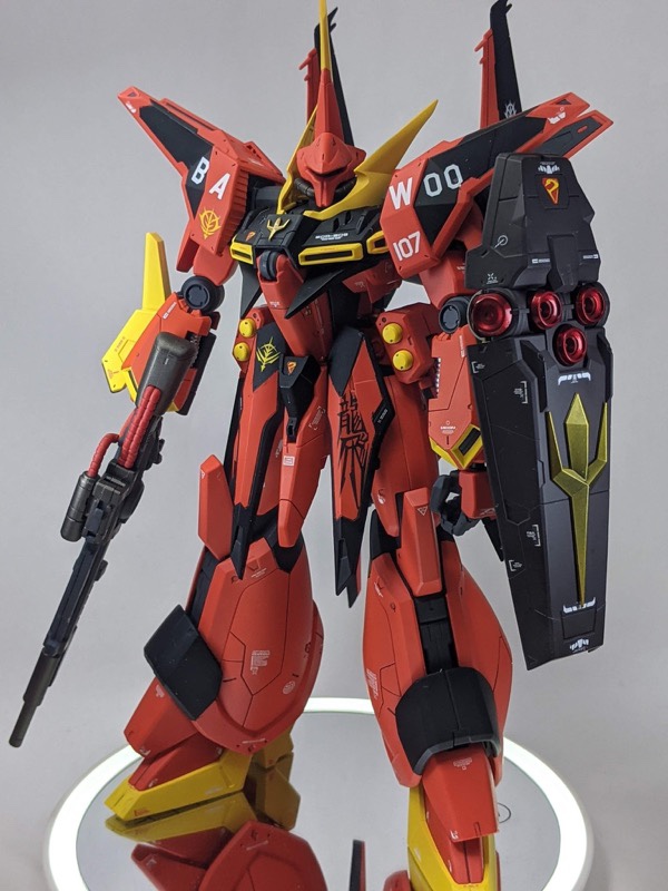 昨日完成したガンダムアーティファクトのナイチンゲールです。いつものようにアクリル絵の具を使用して、筆塗り全塗装です。レッドの部分は、アクリル絵の具のカッパーとレッドを調色して作りました。 pic.twitter.com/8Aok3FdGZn