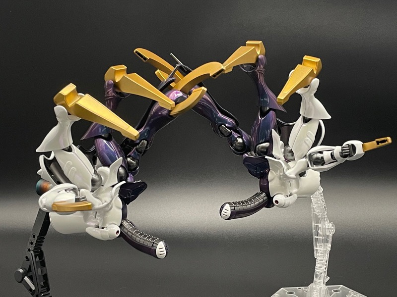 白以外の全てのパーツと、一部白外装を塗装しています。フレームもプラスチックっぽい紫が今一つだったので焼鉄色に塗装しました。つや消し仕上げにしたのでメタリック感は今一つかもしれませんが…😅#うみんちゅ杯プチ13 pic.twitter.com/NJhDtXpp7X