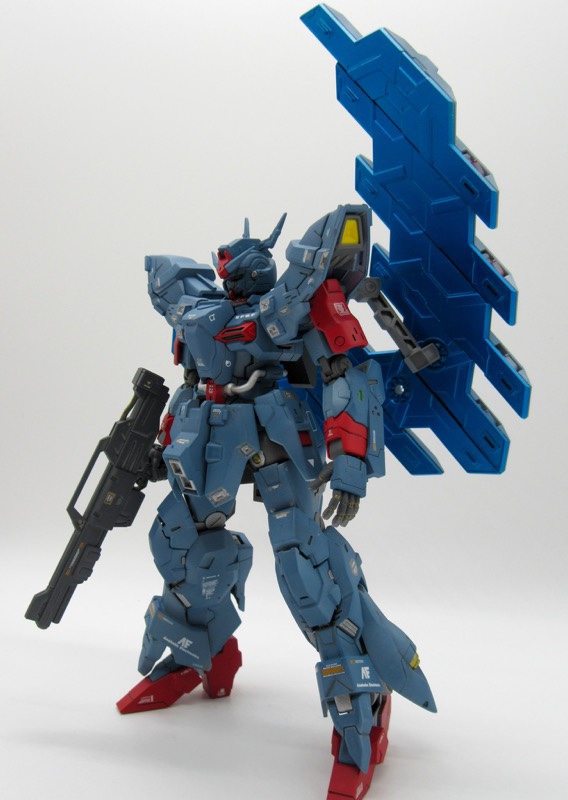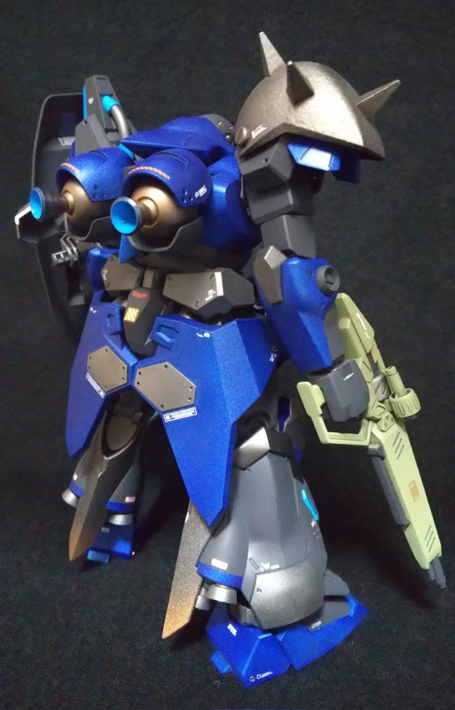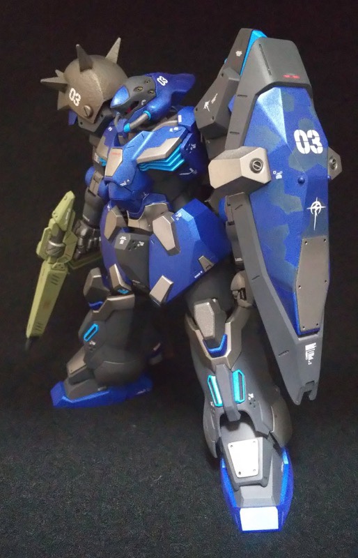 初参戦よろしくお願いします。オリジナルカラーで仕上げた #メッサー です。背中のバーニアは一回り大きく、頭部バルカンは真鍮パイプ埋め込み、所々ビルダーズパーツやプラ板貼りつけてディティールアップしました。ブルーは艶消しメタリックで、盾はあまり目立たない迷彩に。 pic.twitter.com/i9sGeW8i5A