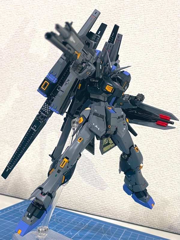 当時から、ガンブラスターのカラーが嫌でガンイージカラーがあれば…と思っていました。ガンイージは成型色仕上げなので、追加スラスターの色を如何に寄せるか、という所に重きを起きました。後は近所でガンイージが投げ売りされてたから…(^_^;)#うみんちゅ杯プチ13 pic.twitter.com/88ZrmXwRjw