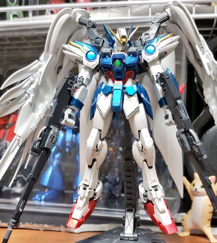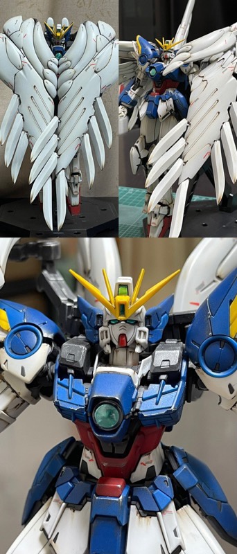 MGウイングガンダムゼロVer.KAで参戦します。成型色を活かした無塗装簡単仕上げ。素組みでも文句無しの超良キットでした。ウォッシングとドライブラシ、ウェザリングマーカー等でサビ表現を加えるだけでも超映えるゼロの決定版的キットだと思います🙂 pic.twitter.com/JTdxUXB0rP