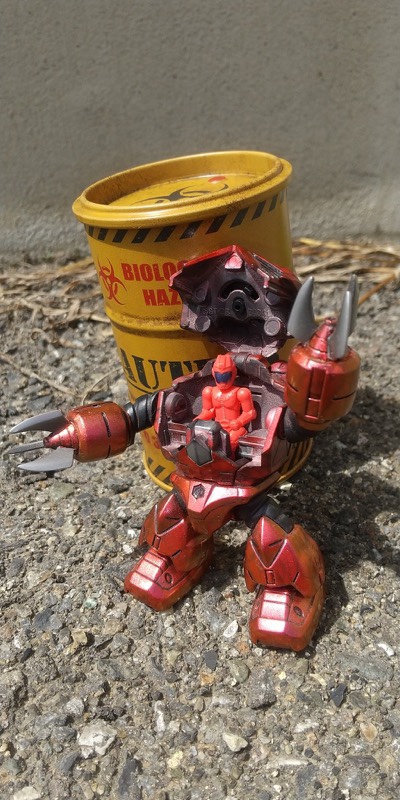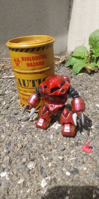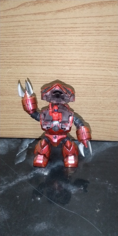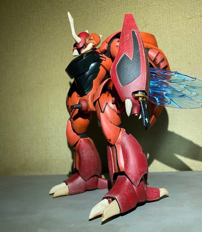 キットの表面がツルツルだったので溶きパテを歯ブラシでトントンして塗りつけて甲殻類のような凹凸を再現し、全塗装した後に淡色でドライブラシしました
