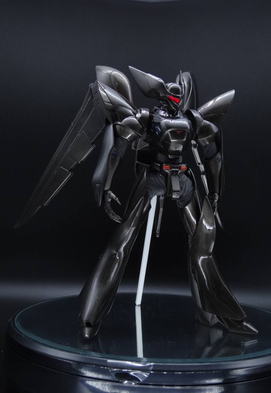 ヒュッケバインで参加させていただきます。バンプレストのプライズ景品をガンダムマーカーの部分塗装仕上げにて。リアウイングの取付角度だけ少し上向きになるよう調整しました!