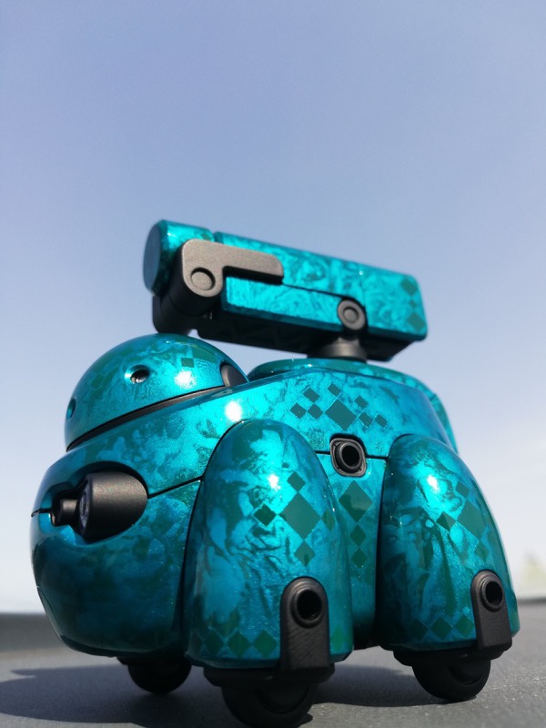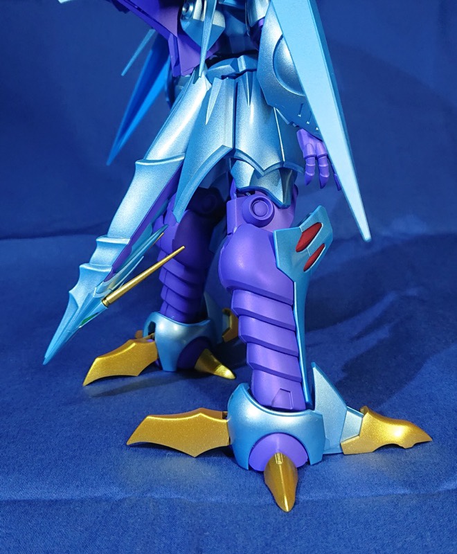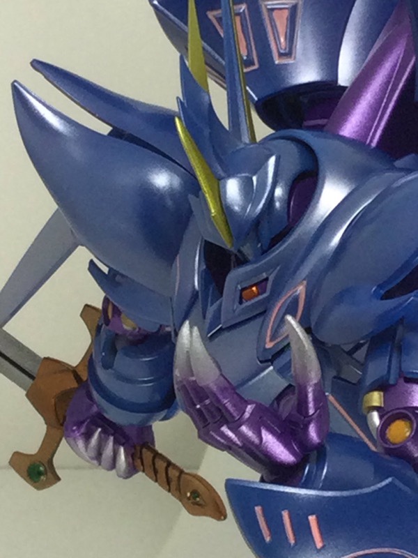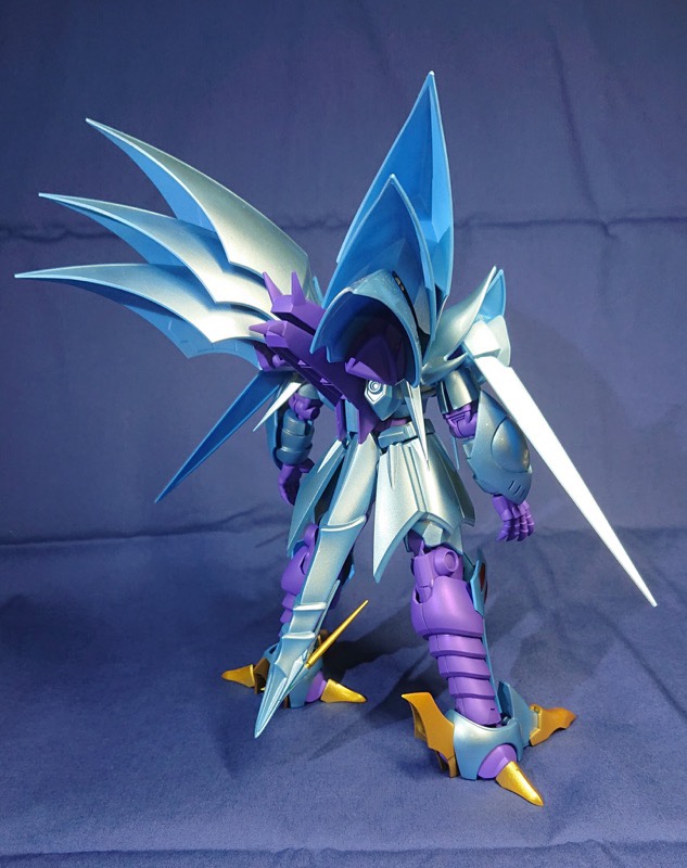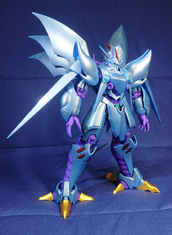 メインカラーをパール白虹ブルーイッシュシルバー(光沢)、関節等はアメジストパープル(艶消し)で塗装しました。