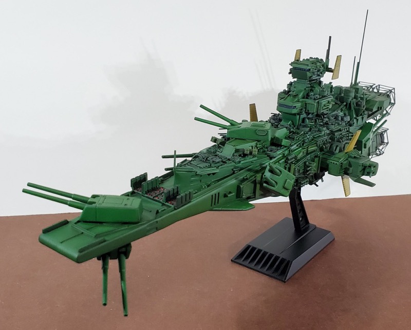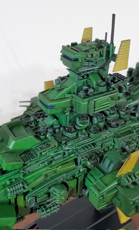 出来たてほやほやの旧キットマゼランで参加です。長さを前後に2cm延長し海外SF作品のプロップに見立ててディテールアップしました。塗装は缶スプレーの後に筆塗りで表情を出し、単色でありながら単色でない色に仕上げています。#うみんちゅ杯プチ14 pic.twitter.com/NGhjP6Yvlz