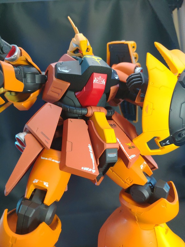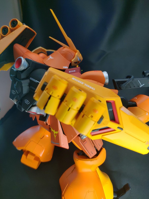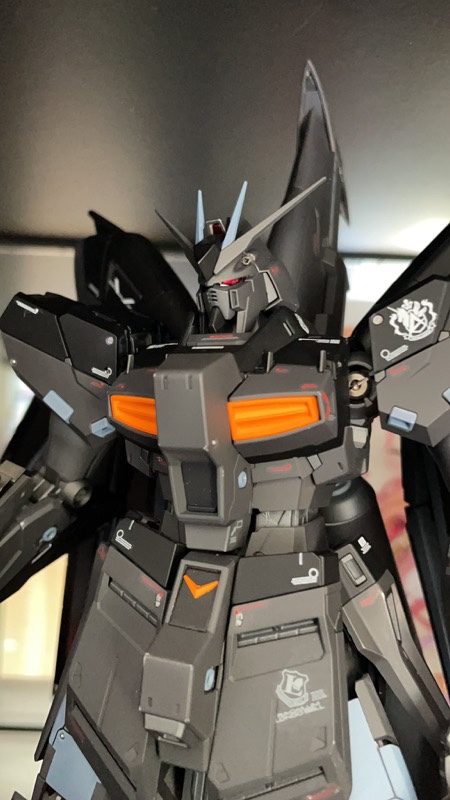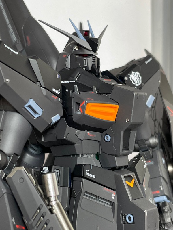 フロストマットブラック、アルティメットブラック、マンダリンオレンジで外装を塗装後デカール艶消し、フレーム部分をサフガンメタで塗装しました。各所にメタルパーツを配置し情報量を上げました。 pic.twitter.com/gsdSy6vJex