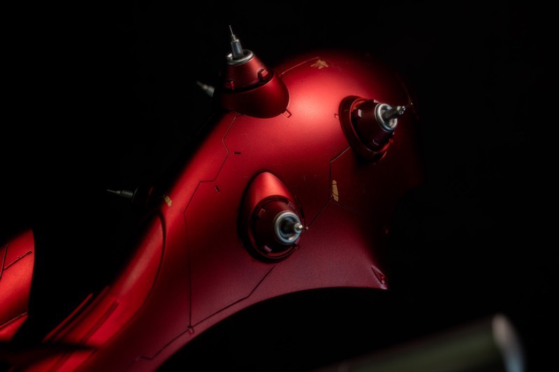 フレームとパイプをメタリックで外装をローズディープレッドとジャーマングレーで塗り分けています。