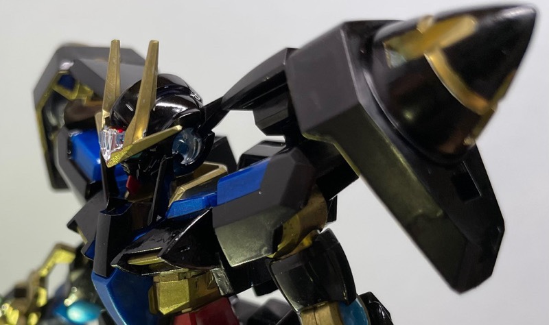 8〜9月で作ったダブルオーガンダムです。黒地に金色のカラーリングを意識しました。仮面ライダーオーズや邪虎丸、KMF蜃気など、黒金デザイン好きなんですよねʕ•ᴥ•ʔ#うみんちゅ杯プチ14 pic.twitter.com/p4Y6Q0AxuH