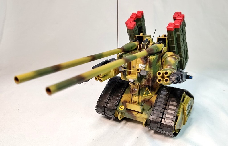 履帯の複線化やキャノン砲の延長、大型ミサイルランチャーを増設し遠距離砲撃支援に特化した機体として作成しました😆 pic.twitter.com/0KtvNp2qmO