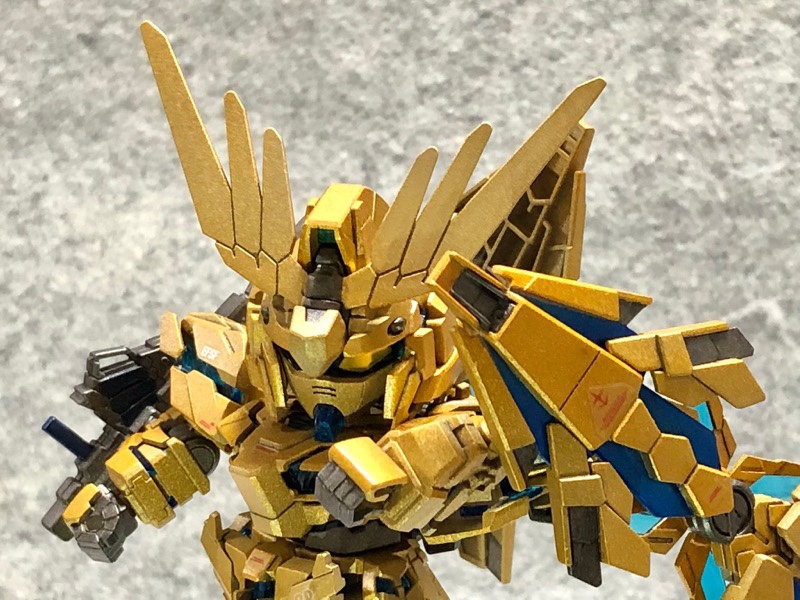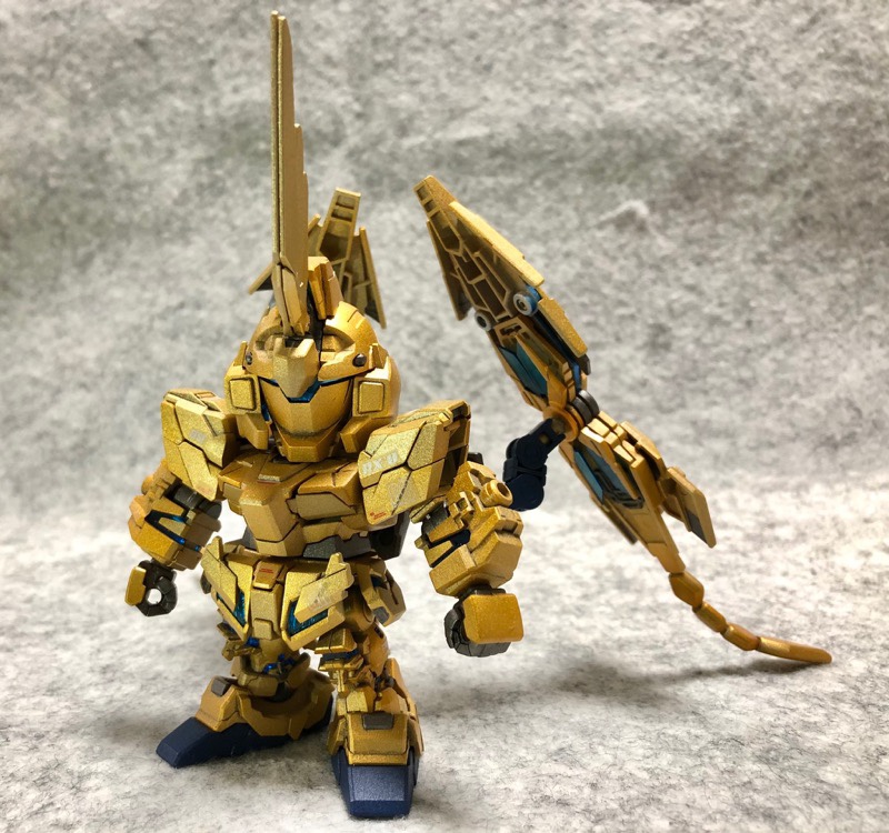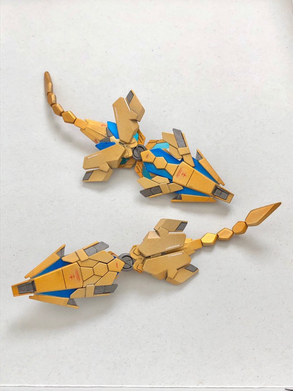 ガンマカのメッキシルバーを下地に、クリアブルーと、GXクリアゴールドにクリアイエローとクリアレッドを混ぜて作ったゴールドを。